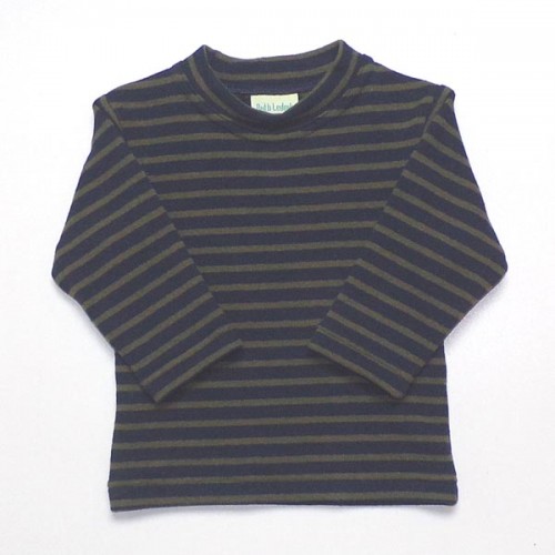 Navy and olive stripe round neck top in a soft cotton mix knit * 70% cotton, 19% polyacrylic, 4% elastin, 3% viscose, 4% polyamide * machine washable at 30 degrees