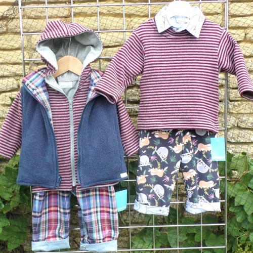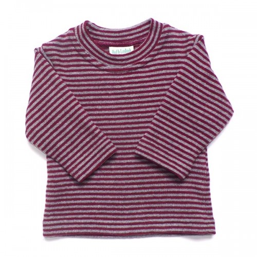 Burgundy and grey stripe round neck top in a soft cotton mix knit * 70% cotton, 19% polyacrylic, 4% elastin, 3% viscose, 4% polyamide * machine washable at 30 degrees