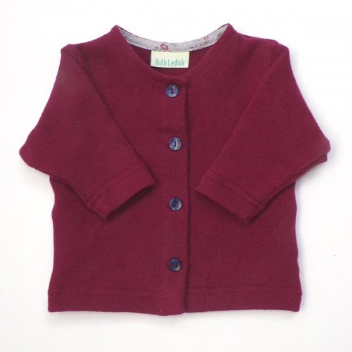 Burgundy cardigan in sof cotton knit with a floral cotton trim - 70% cotton, 19% polyacrylic , 7% viscose, 4% elastine - machine or hand wash