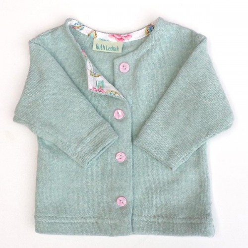 Eau-deNil cardigan in a soft cotton knit mix, with a floral cotton trim - 70% cotton, 19% polyacrylic , 7% viscose, 4% elastine - machine or hand wash