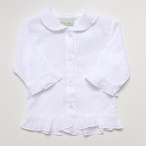 White fleck cotton blouse with frill collar, hem and wrist - 100% cotton - machine washable